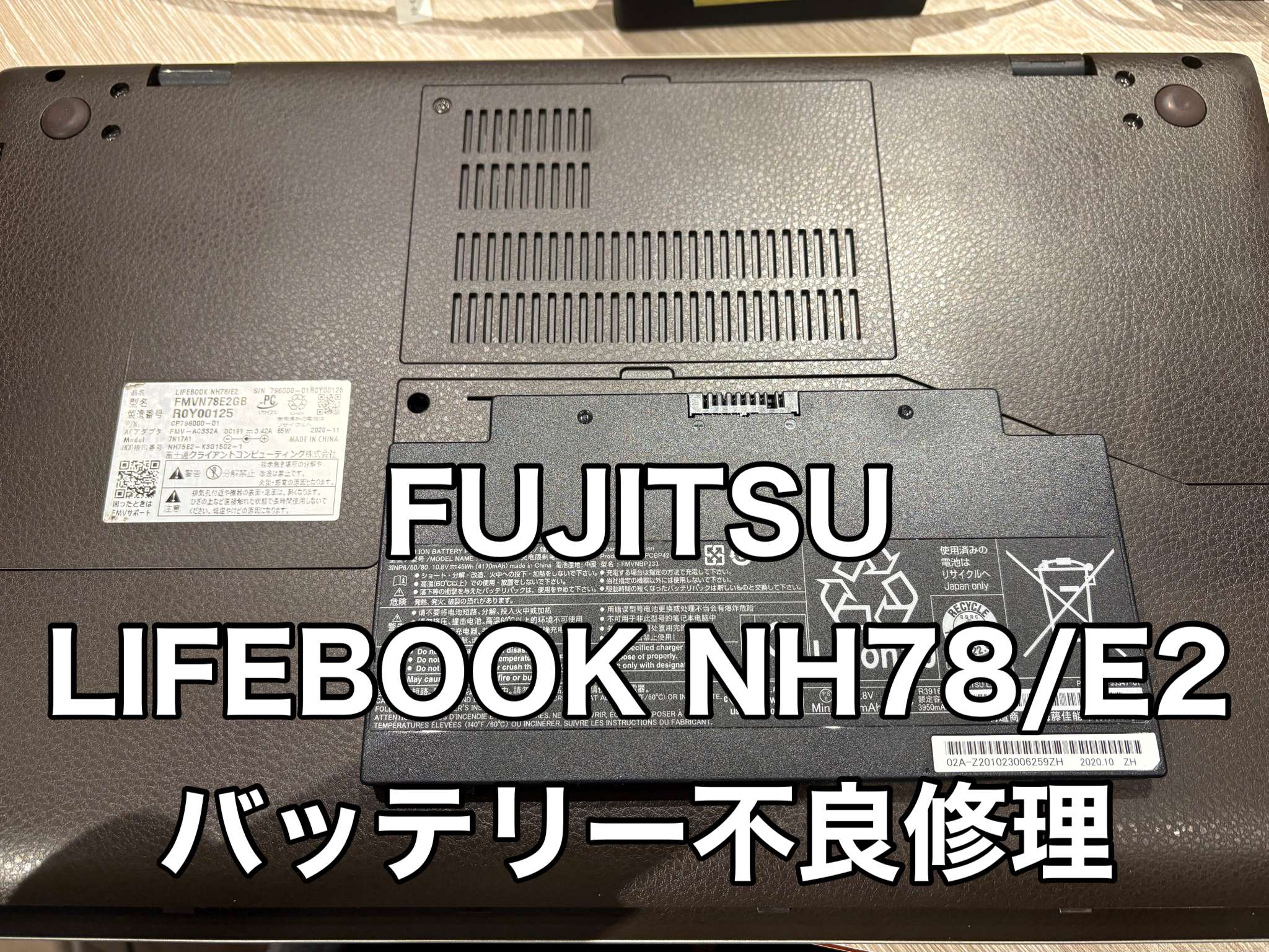 Fujitsu LIFEBOOK NH78/E2のバッテリー不良修理の事例の事例